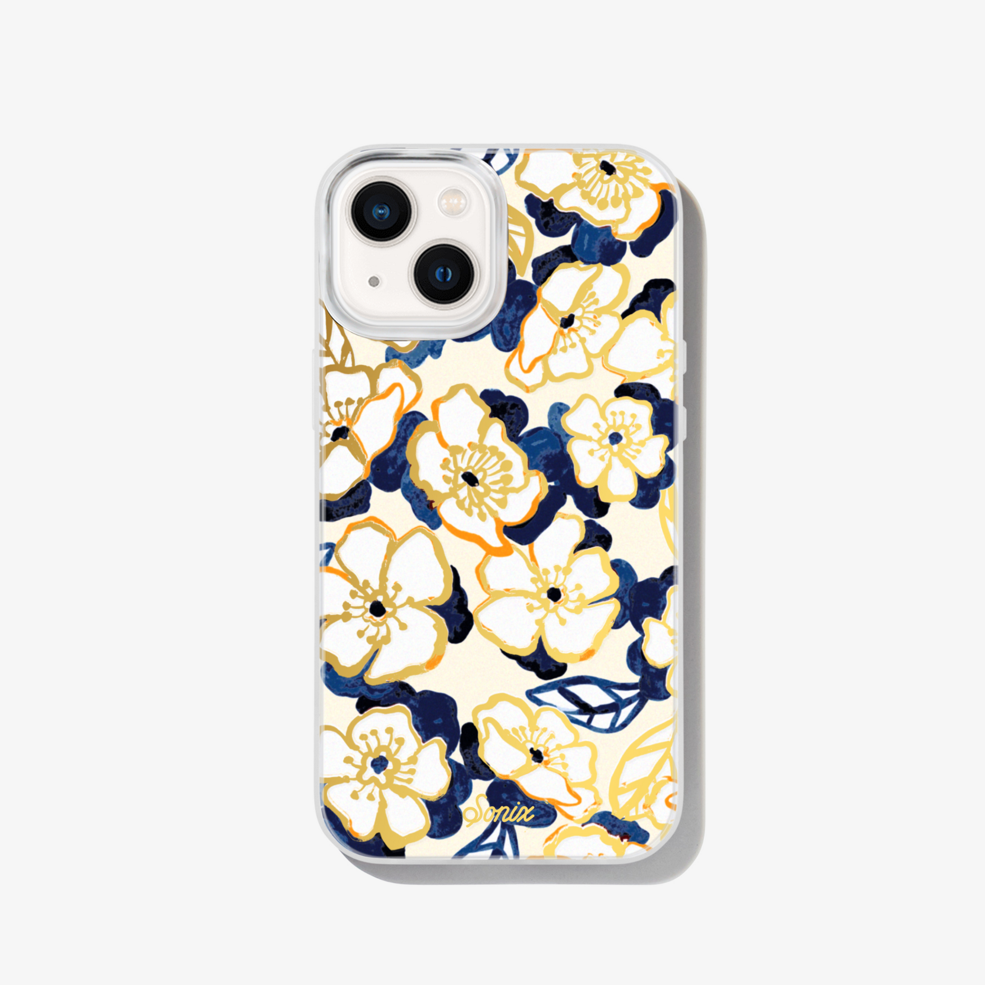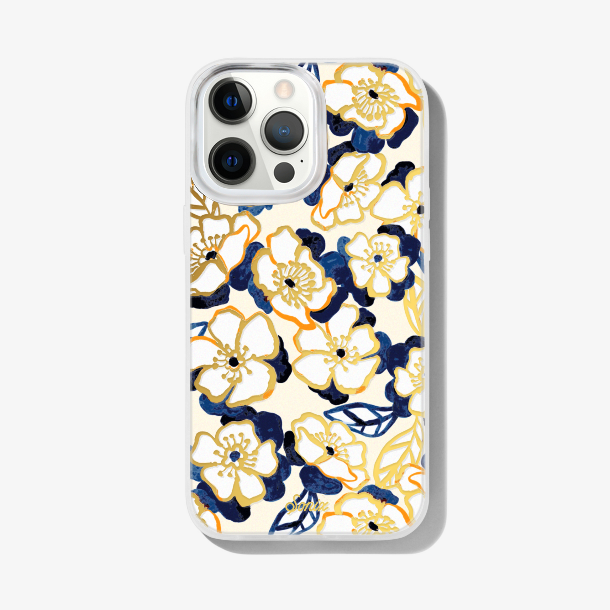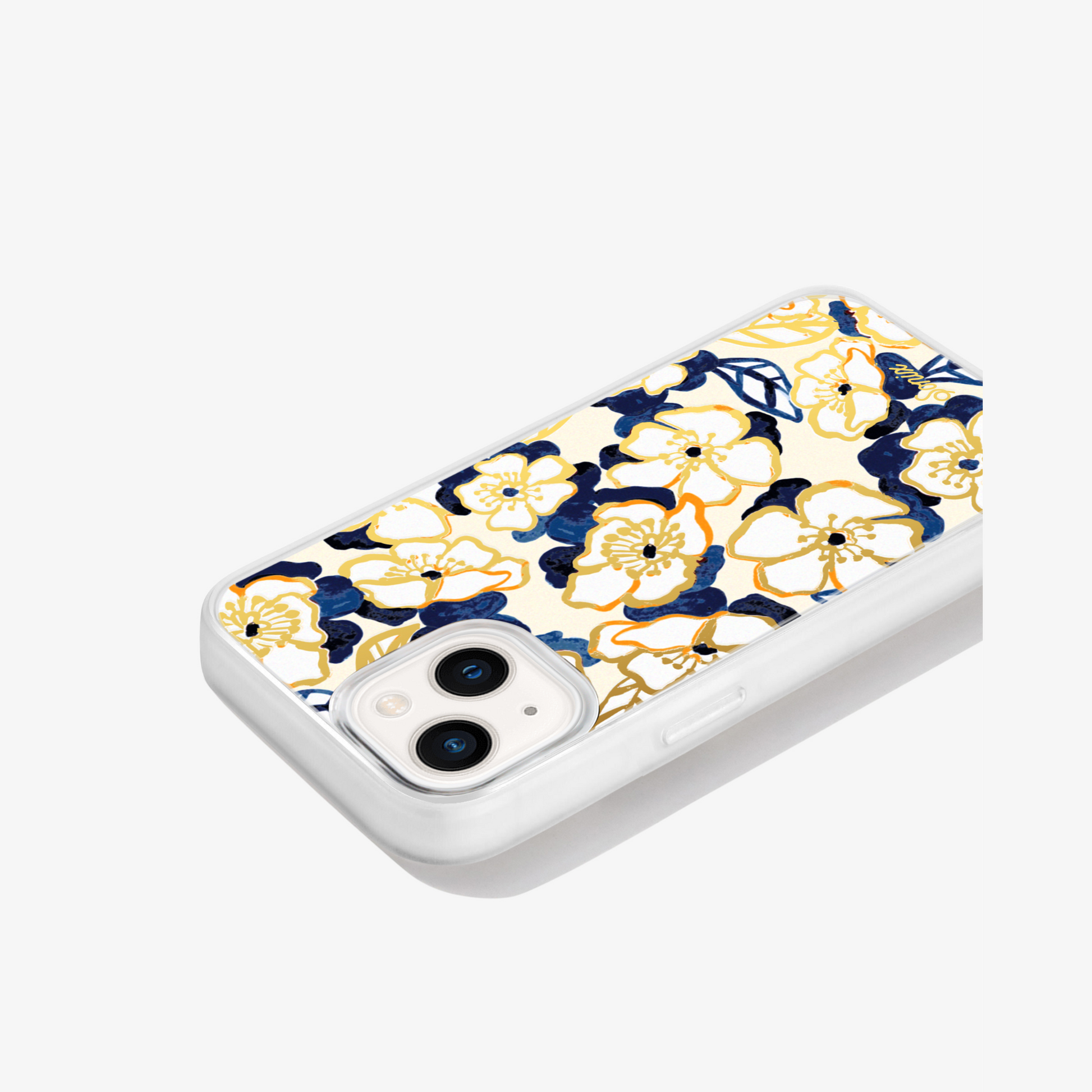 Blue Petal, MagSafe® Compatible iPhone Case features loose white and blue petaled flowers with gold foil details. Add a bit of color while stay neutral to your iPhone. Florals are always in season!