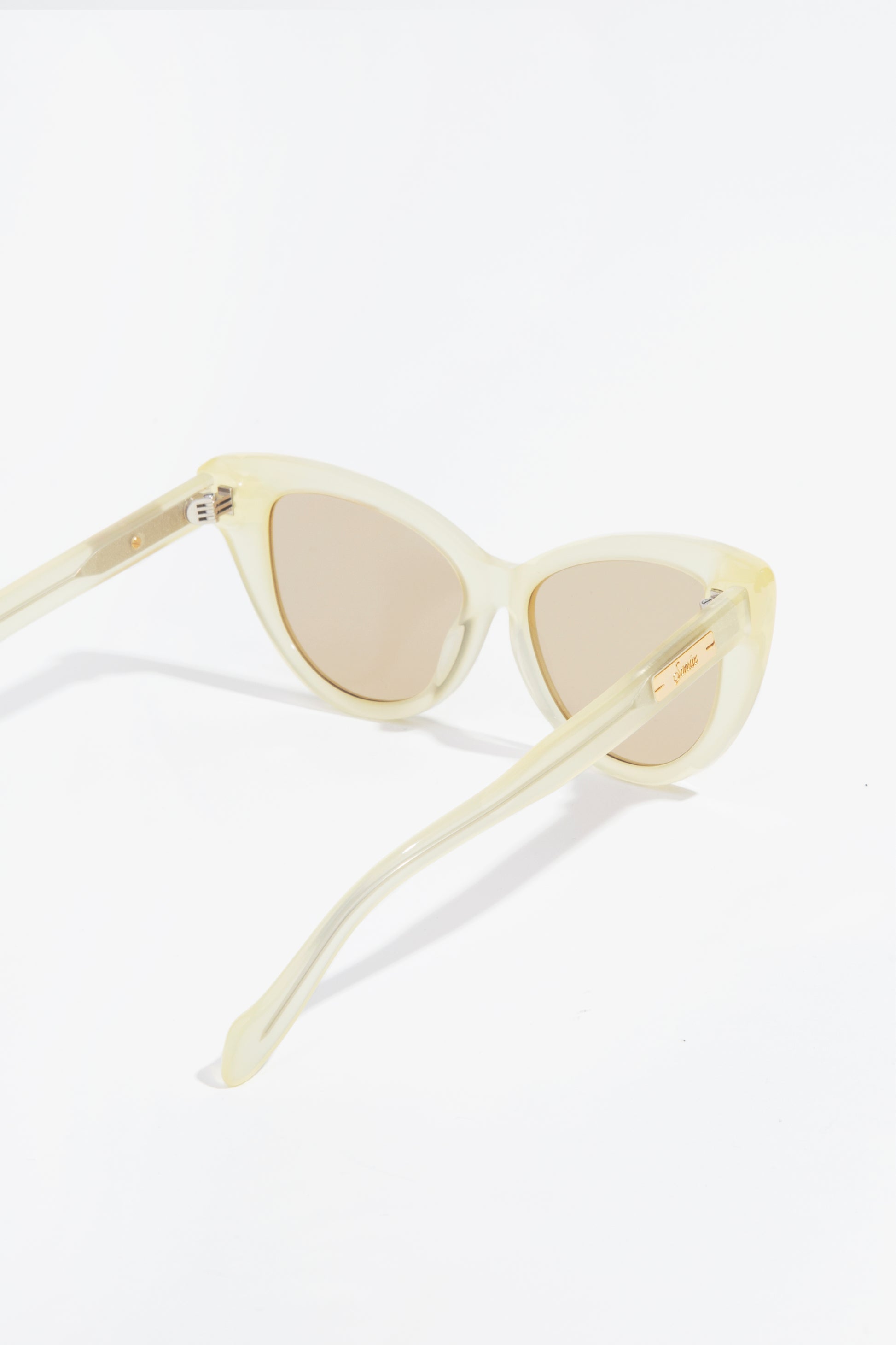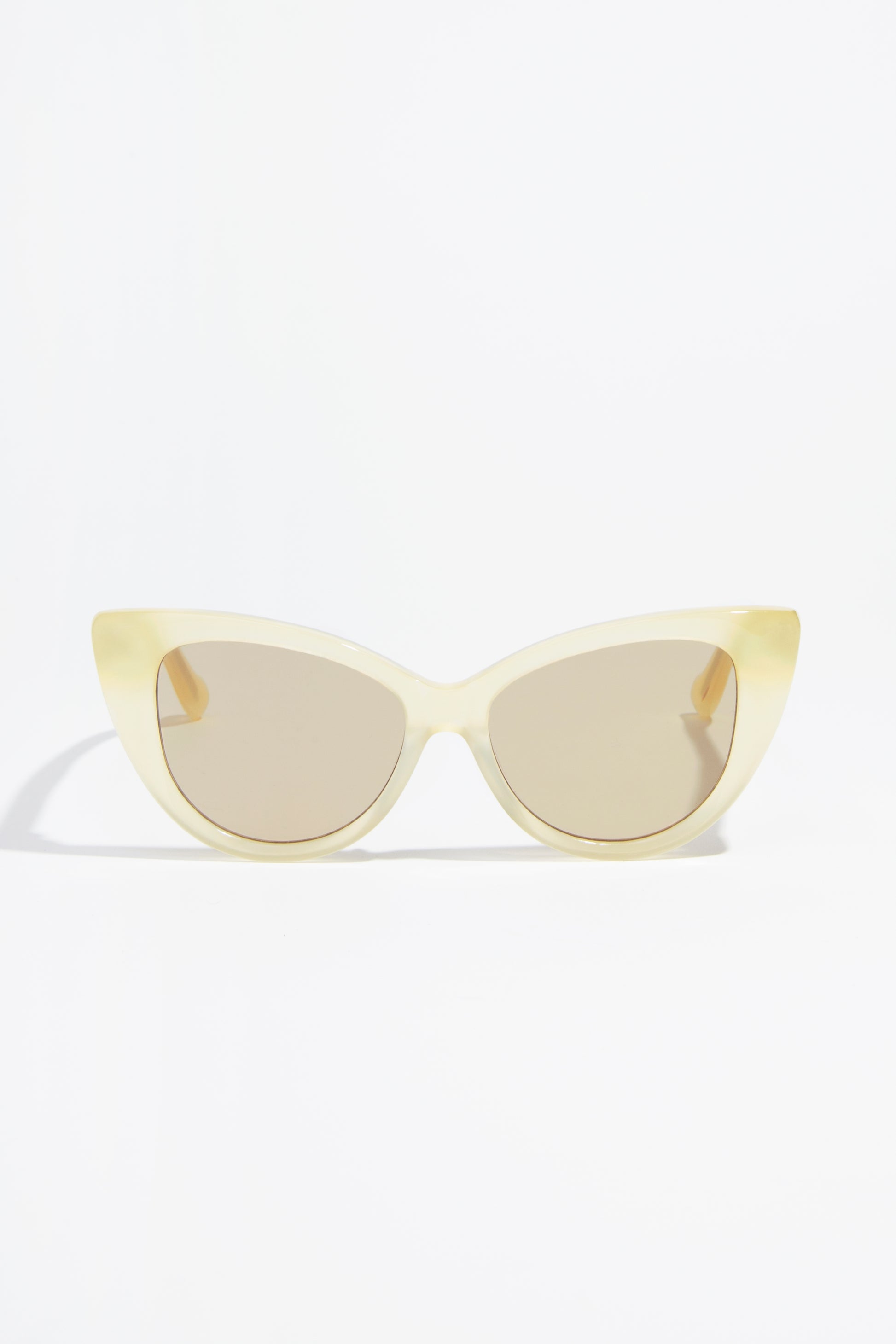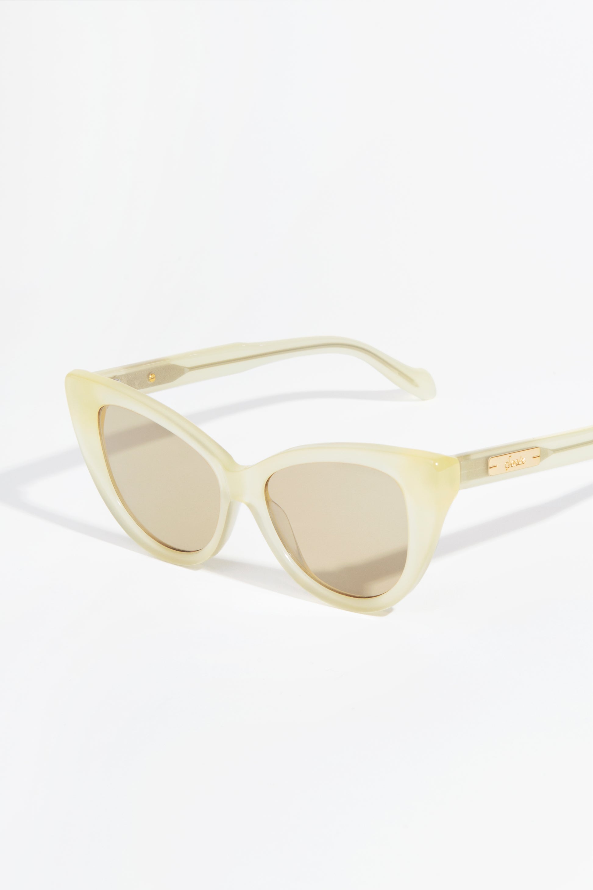 We’ve collaborated with one of our favorite LA brands, For Love & Lemons, to bring you the perfect sunnies for summer. The vintage-inspired Kyoto bring a feminine flair, combining the long-beloved cat-eye with milky yellow acetate and khaki colored lenses.